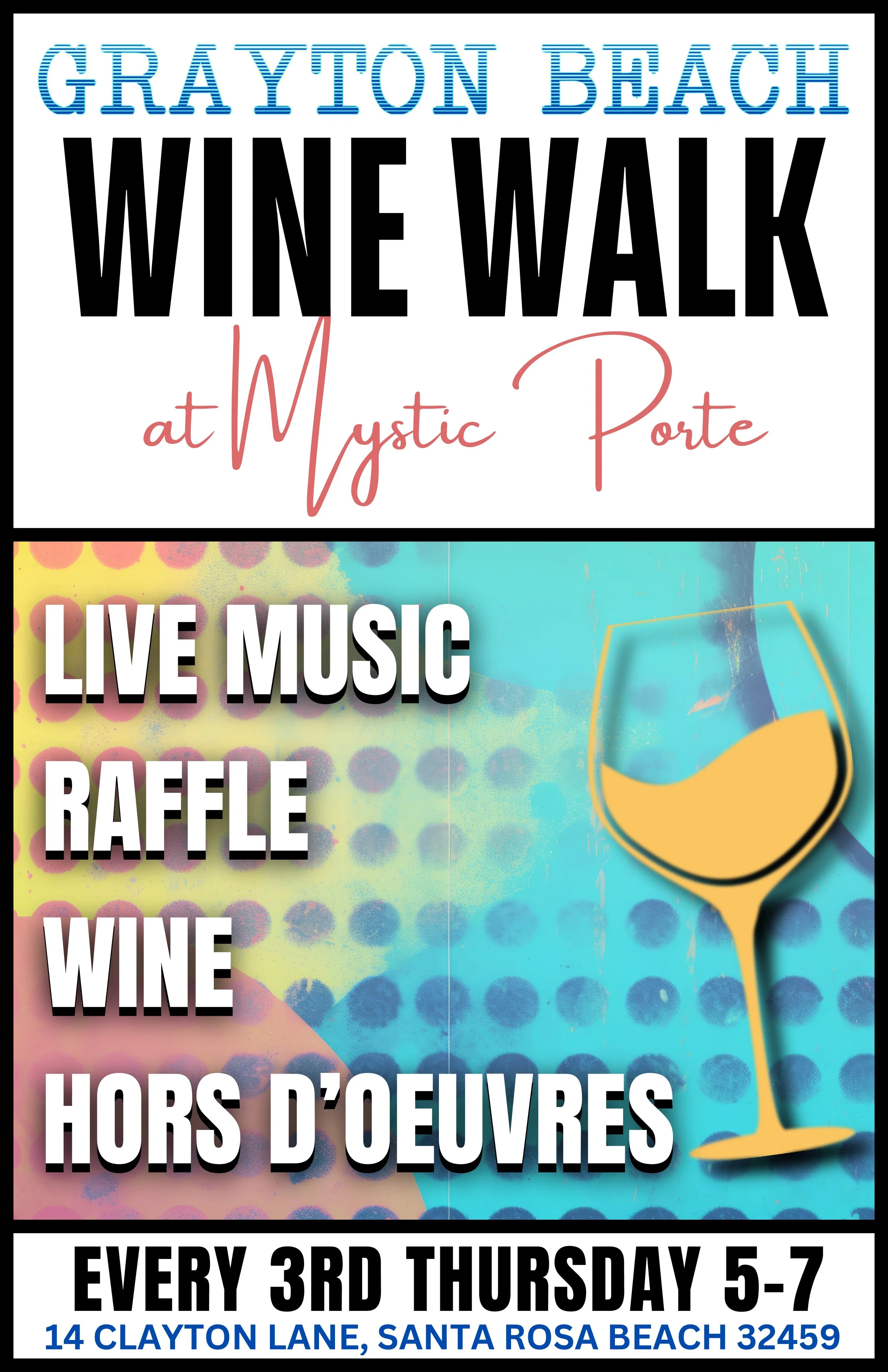Each Wine Walk we love to feature our local Artists. Depending on the artists set up we can have 3-4 per night. Bringing a hors d’ oeuvre to have at your booth is required. We will provide wine for you to serve at your booth. You can set up all day or just for the event. Artists need to be fully set up by 4:30. Thanks so much for your interest. After you have submitted this form we will be in touch to confirm and give you more details! 2nd Annual Grayton Spring Art Fest!